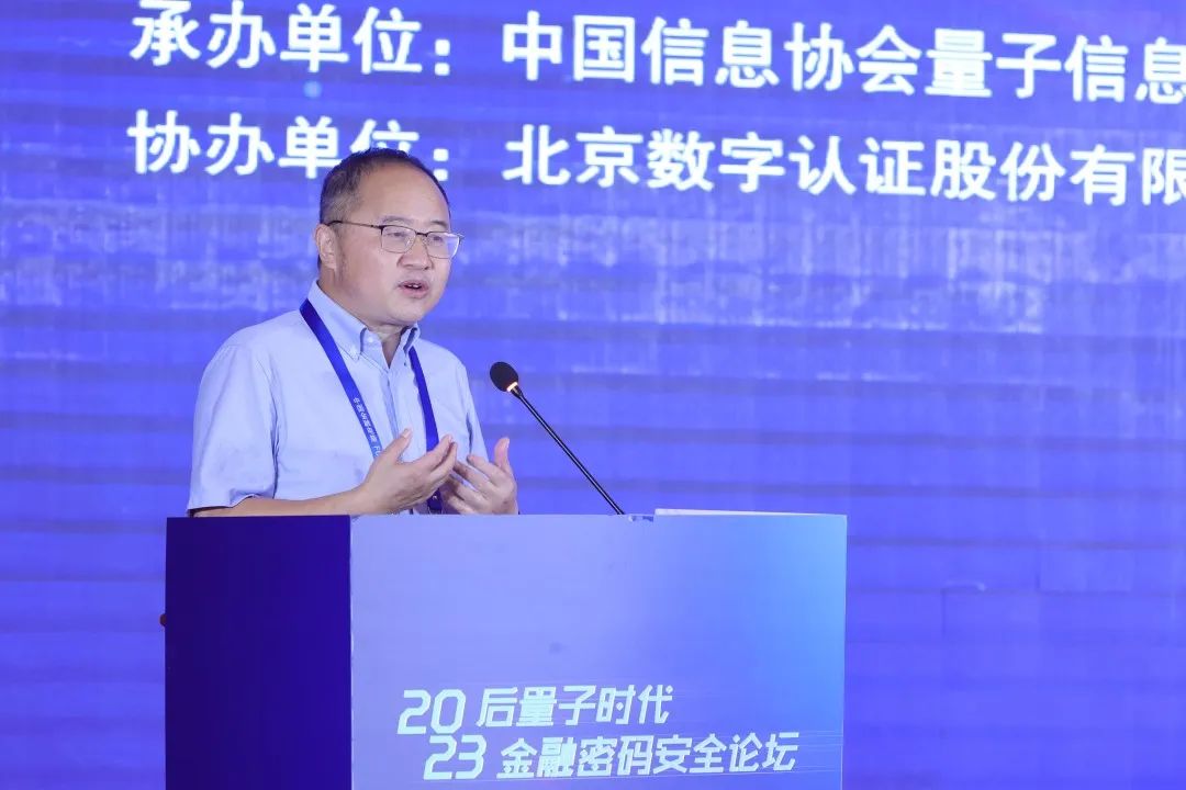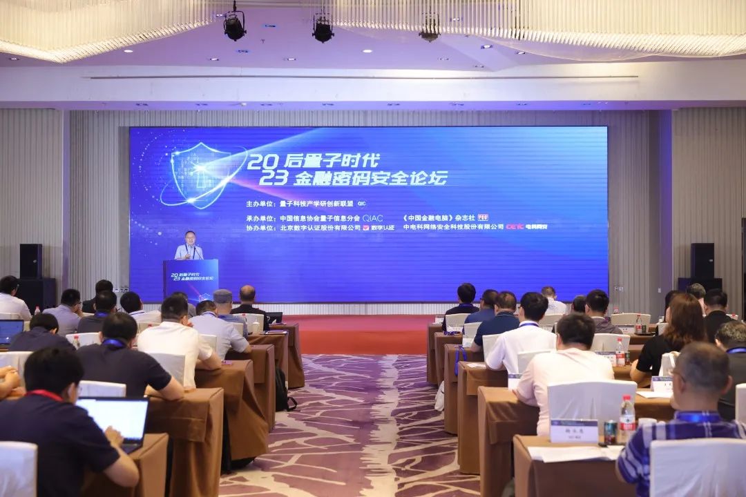近日,由量子科技产学研创新联盟主办,中国信息协会量子信息分会、《中国金融电脑》杂志社承办,北京数字认证股份有限公司(简称:数字认证)、电科网安协办的“2023后量子时代金融密码安全论坛”在京召开。来自中国密码学会、密标委、金科联盟、清华大学、重庆大学等量子物理学、密码学领域专家学者,工商银行、农业银行、中国银行、建设银行、邮储银行、民生银行、华夏银行等金融机构研发条线负责人,密码产业企业代表等共计50余人,围绕后量子时代金融密码安全技术及其在金融领域的应用,展开热议。
