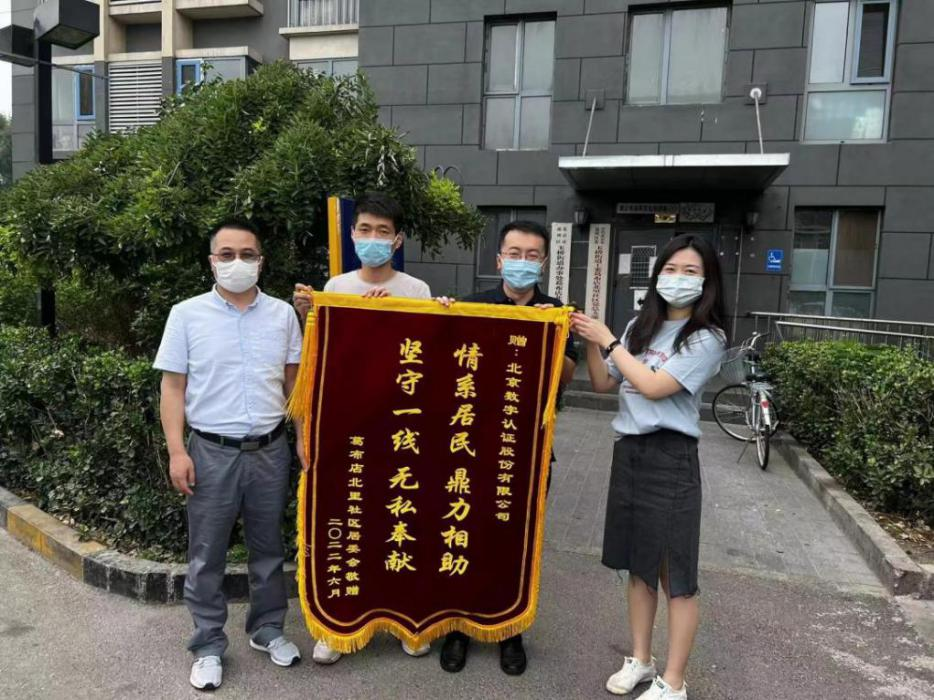 数字认证公司党委、工会慰问下沉干部助力社区疫情防控工作获赠感谢锦旗